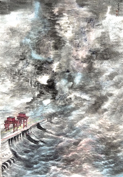 民盟中央美术院上海分院副院长黄晖代表上海民盟书画院参加,活动结束后创作作品《高峡烟云》,并成功入选线上书画展览。